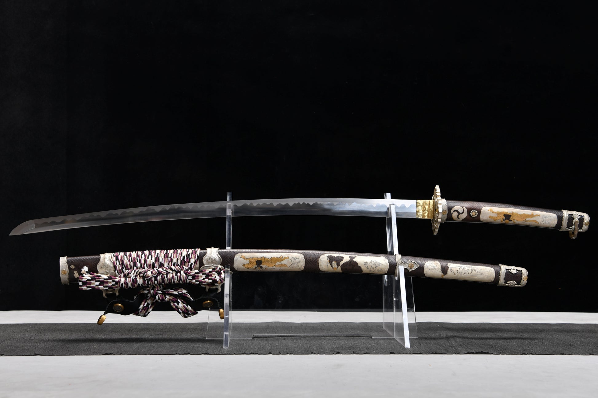 Scabbard material: Copper scabbard carved with gilded silver (cork core)