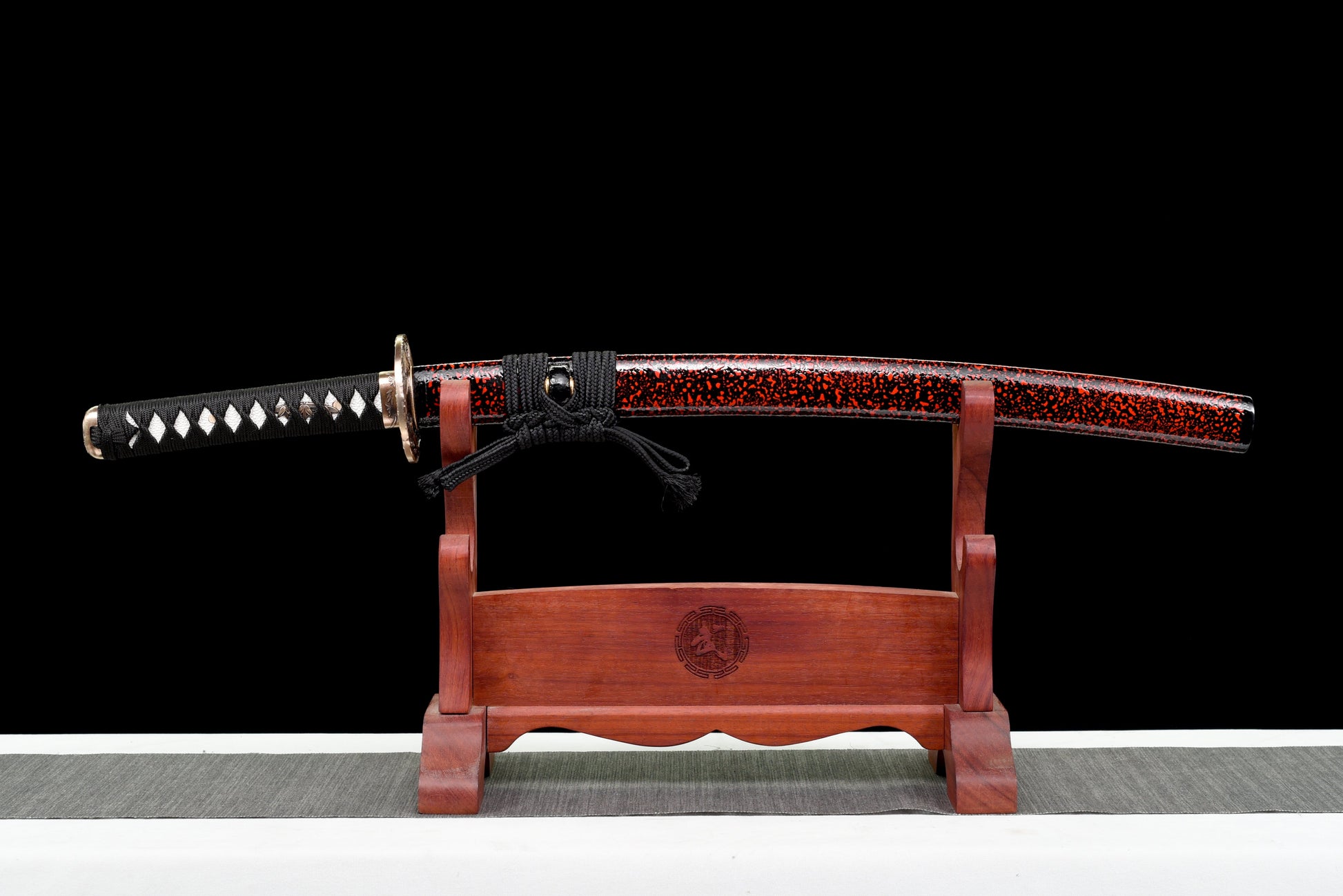 T10 steel blade, Red spotted scabbard and Black rope wooden handle White ray skin