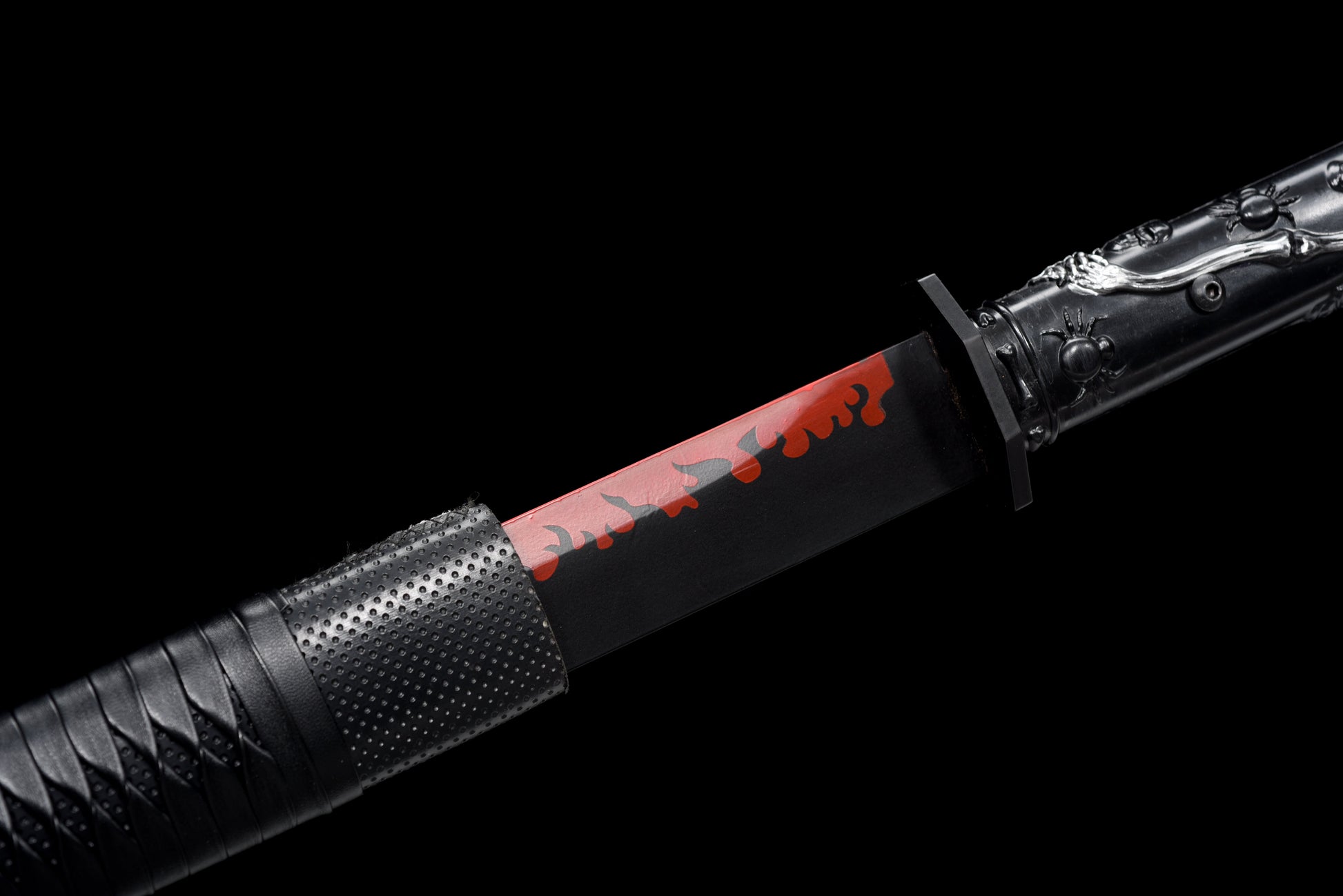 High manganese steel blade , black scabbard,rhomboid theme tsuba,Alloy handle